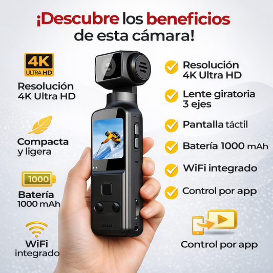 Cámara Digital de Bolsillo 4K – Rotación 270°, WiFi, Estabilización y Grabación en Movimiento